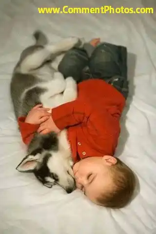 Husky Puppy And Baby