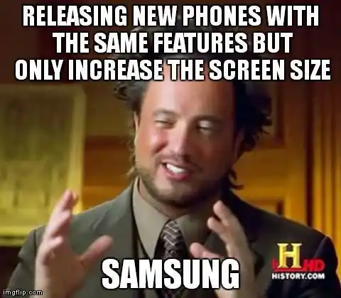 Releasing New Phones With The Same Features But Only Increase The Screen Size - Samsung - Ancient Alien Guy Laughing Copy Link Download Share Facebook WhatsApp Twitter Pinterest Image Tags releasing new phones with the same features but only increase the screen 480 × 419 px 33.8 KB English 449 views