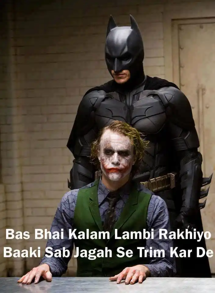 Bas Bhai Kalam Lambi Rakhiyo - Baaki Sab Jagah Se Trim Kar De - Heath Ledger As Joker In Batman Dark Knight - Bruice Wayne as Christian Bale