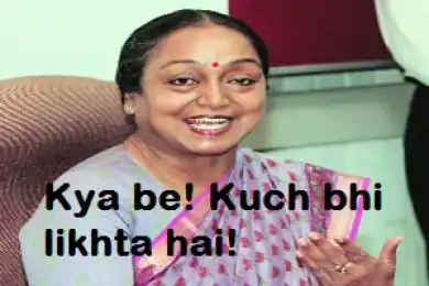 Kya Be Kuch Bhi Likhta Hai - Meira Kumar Copy Link Download Share Facebook WhatsApp Twitter Pinterest Image Tags kya be kuch bhi likhta hai meira kumar hindi 390 × 260 px 84 KB Hindi 619 views