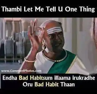 Thambi Let Me Tell You One Thing - Endha Bad Habitsum Illama Irukkathe Oru Bad Habit Thaan Copy Link Download Share Facebook WhatsApp Twitter Pinterest Image Tags thambi let me tell you one thing endha bad habitsum illama irukkathe 320 × 309 px 55.5 KB Tamil 1,671 views