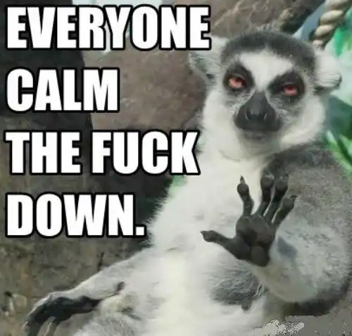 Everyone Calm the Fuck Down - Lemur Copy Link Download Share Facebook WhatsApp Twitter Pinterest Image Tags everyone calm the fuck down lemur english 500 × 477 px 37.8 KB English 521 views