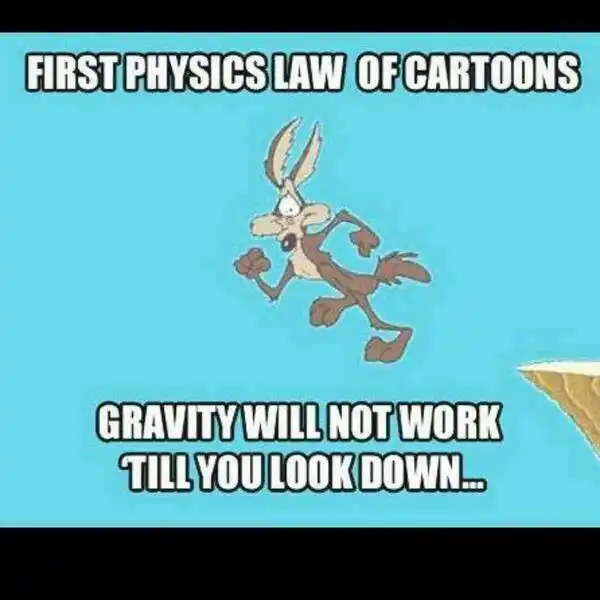First Physics Law Of Cartoons - Gravity Will Not Work Till You Look Down - Wile E Coyote Cliff