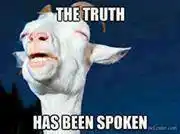 The truth has been spoken - Goat Copy Link Download Share Facebook WhatsApp Twitter Pinterest Image Tags the truth has been spoken goat english 180 × 134 px 5.9 KB English 2,956 views